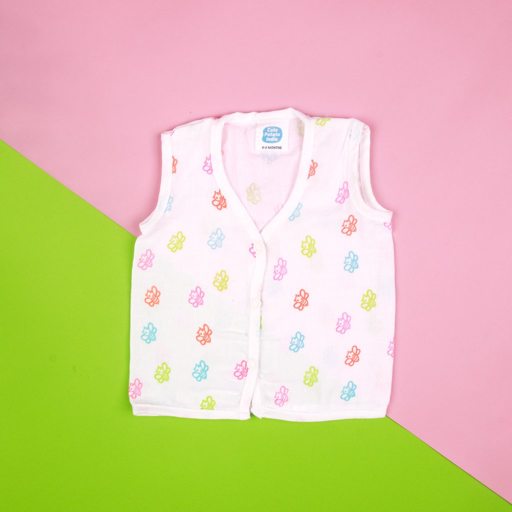 Baby Muslin Cotton Front-Open Vest โ Colorful Bee Print | Soft & Breathable Jhabla