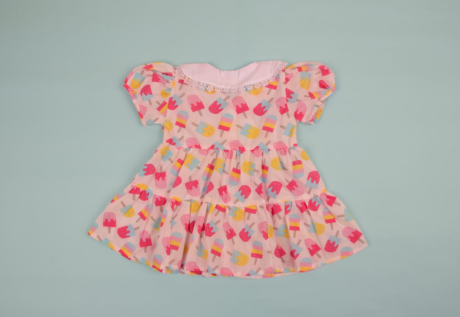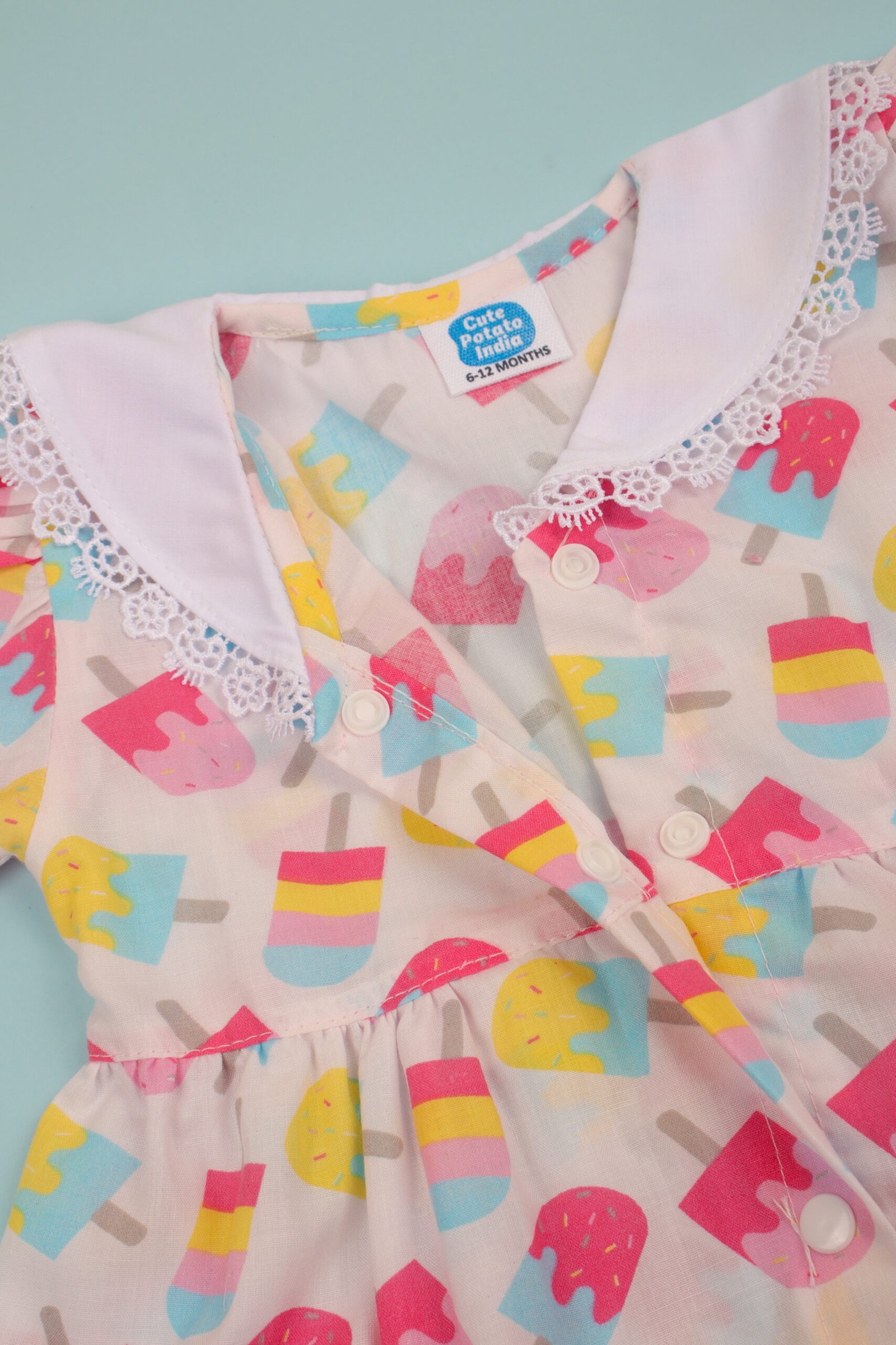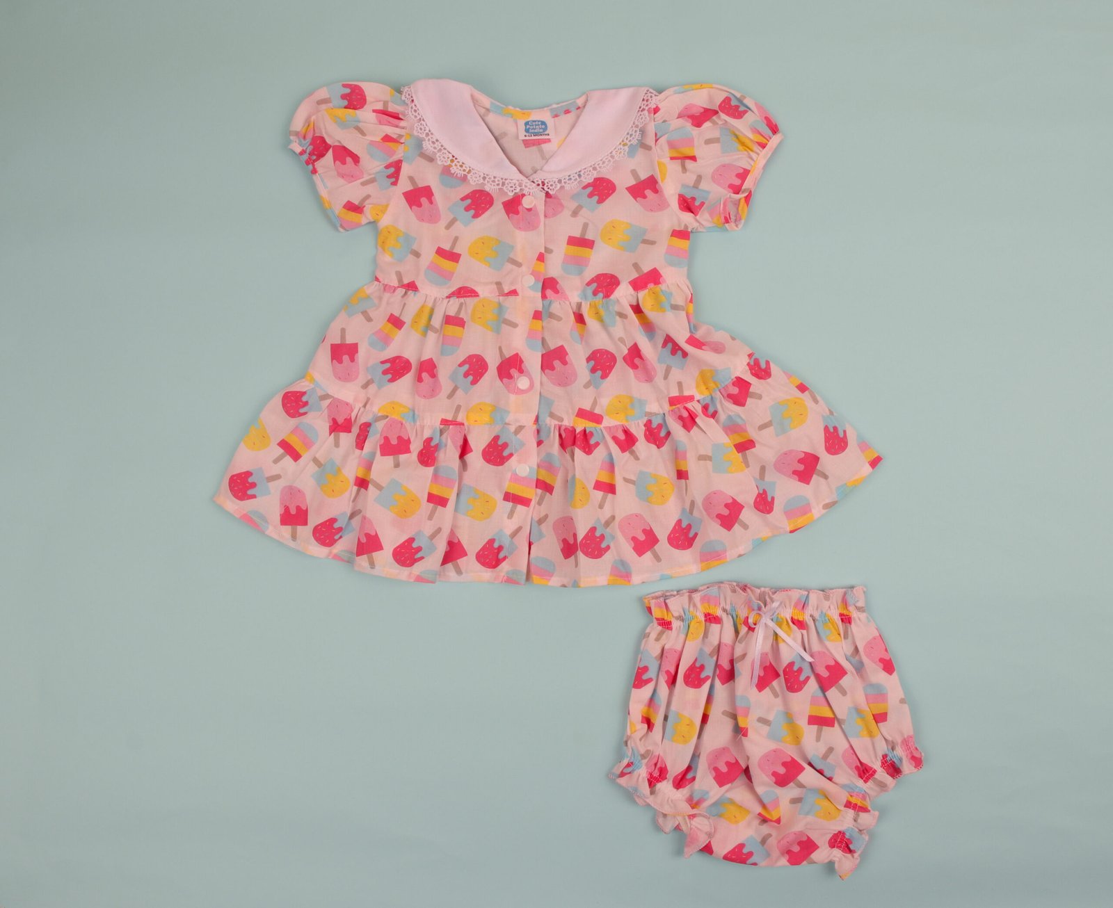 Candy Ice Cream Print Baby Frock with Bloomers – Light Pink