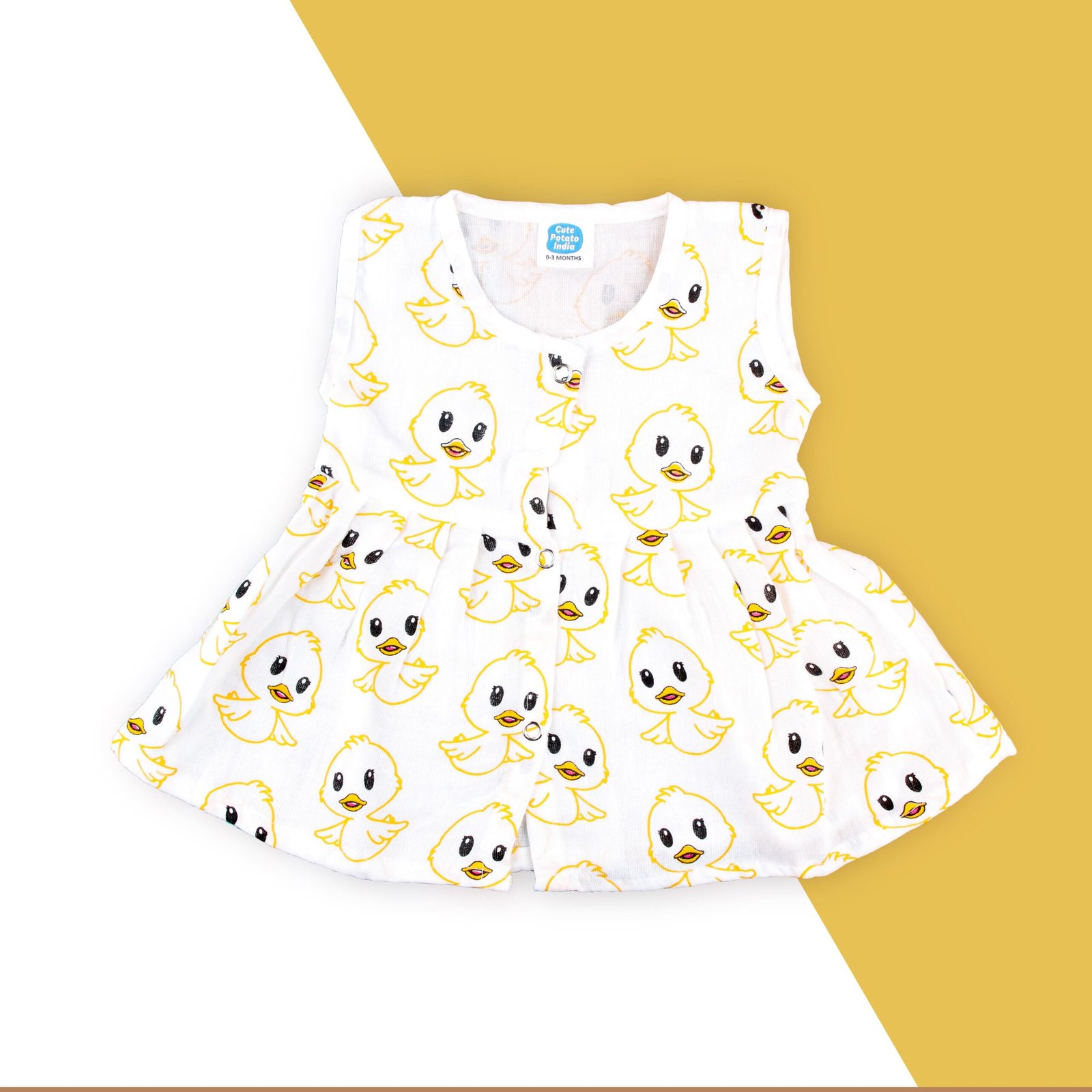 Muslin Pleated Frock – Duck Print