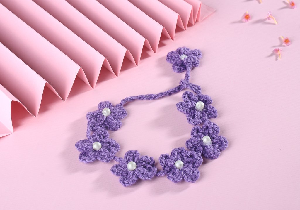 Purple Handmade Crochet Necklace with Pearls for Girls