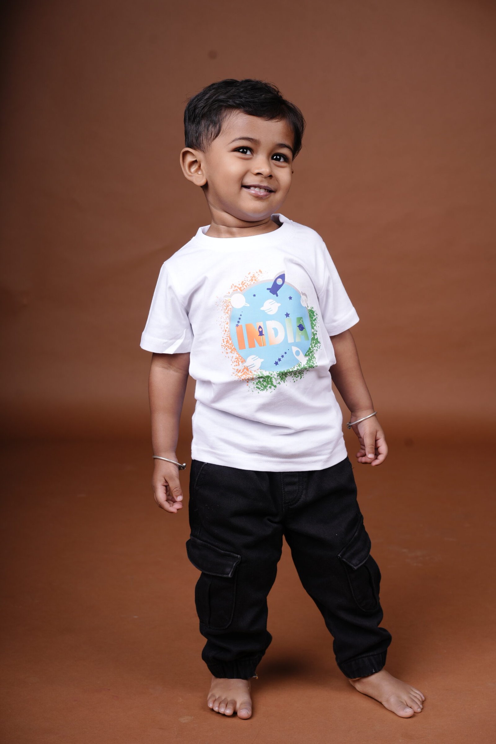 Welcome to a world where comfort meets imagination. At CutePotato India, we believe that children’s clothing should do more than just cover the body; it should inspire the mind and caress the skin. Our latest addition, the White Cotton Kids T-Shirt with India Space Print, is a testament to this philosophy. Designed for the dreamers, the future astronauts, and the little explorers of our nation, this t-shirt combines the pristine simplicity of white cotton with a vibrant, patriotic, and educational design theme.